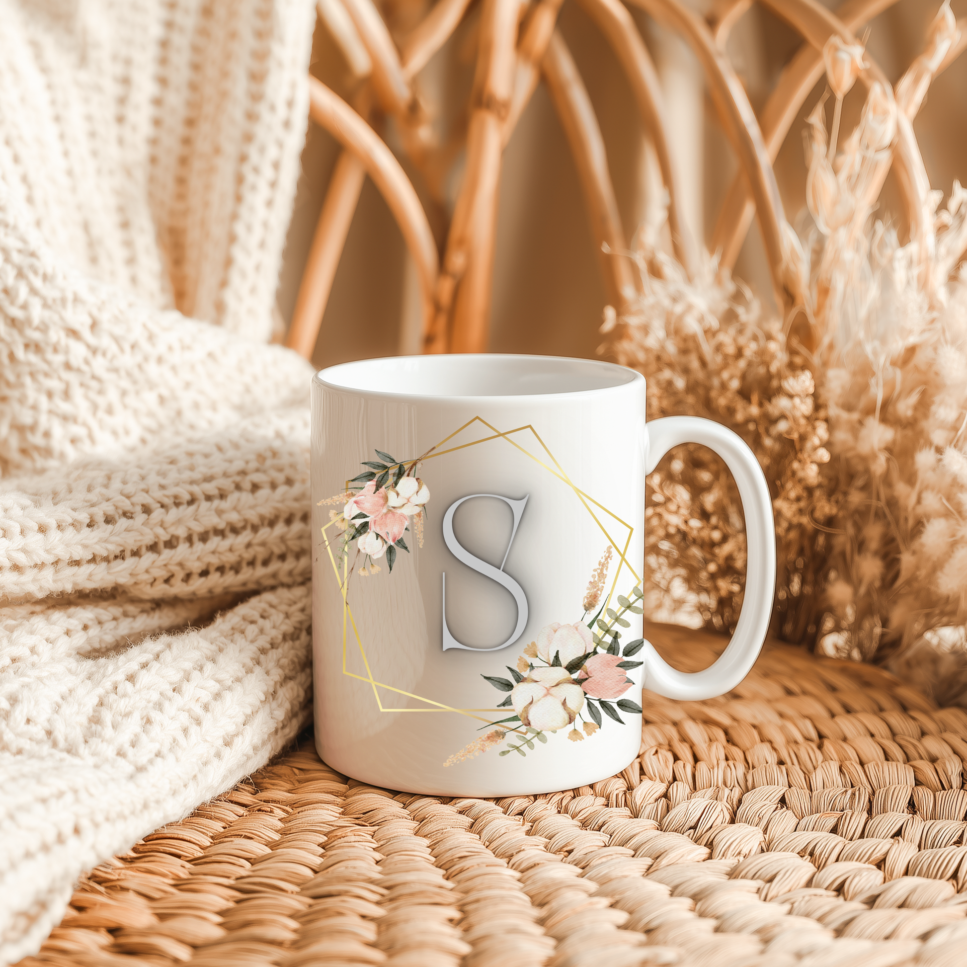 Personalised Floral Mug – Custom Name Gift